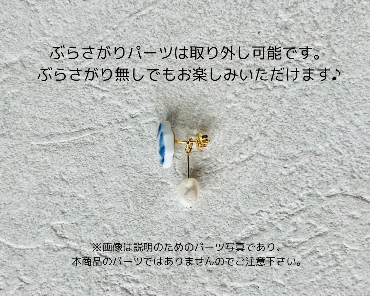 [2way]こちらのピアスはぶら下がりパーツをキャッチとの間に挟んでいます(画像2枚目)。